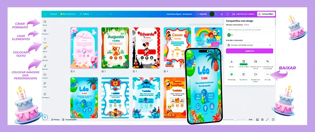 Descubra como transformar seu celular em uma máquina de renda, criando convites animados, personalizados e encantadores para festas infantis, aniversários e eventos.